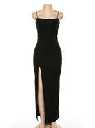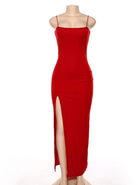 • Détails : Fines bretelles, encolure droite, fente haute sur la jambe
