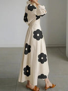 Cette robe longue à imprimé floral géant combine modernité graphique et silhouette structurée. Avec sa taille ceinturée et ses manches bouffantes, elle attire tous les regards avec sophistication.