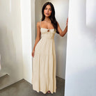 Cette robe longue à fines bretelles combine simplicité et légèreté, parfaite pour rester élégante sans effort. Sa coupe évasée et son tissu doux offrent confort et féminité tout au long de la journée.