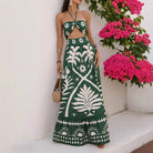 Cette robe longue imprimée à motif tropical est idéale pour une journée d’été ou une promenade en bord de mer. Sa coupe fluide et son imprimé audacieux offrent une silhouette estivale pleine de charme.