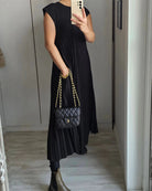 Cette robe longue plissée séduit par sa légèreté et sa silhouette fluide qui sublime la silhouette. Parfaite pour rester chic et confortable lors des journées ensoleillées.