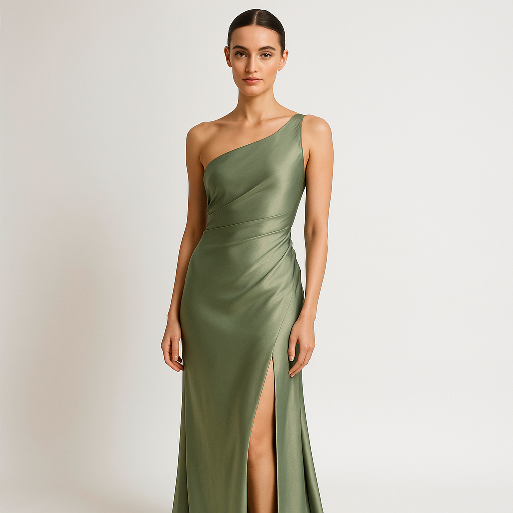 Robe Longue Satinée Asymétrique | Élégance Naturelle | Finition Luxe