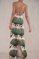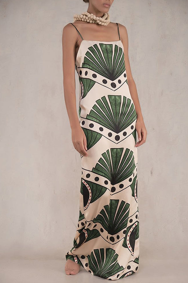 Cette robe longue fluide se pare d’un imprimé feuilles exotiques pour une touche d’évasion instantanée. Le décolleté droit et les fines bretelles mettent délicatement en valeur les épaules tout en offrant un maintien léger. Sa coupe droite et son tissu léger garantissent un tombé gracieux à chaque pas.