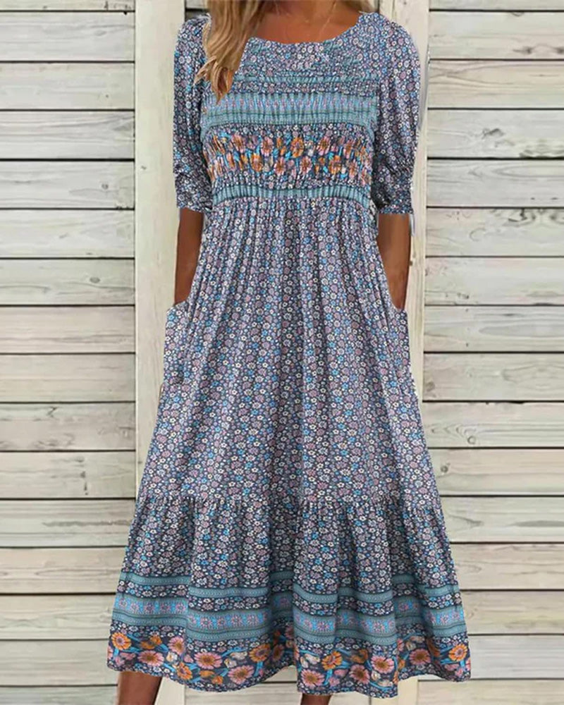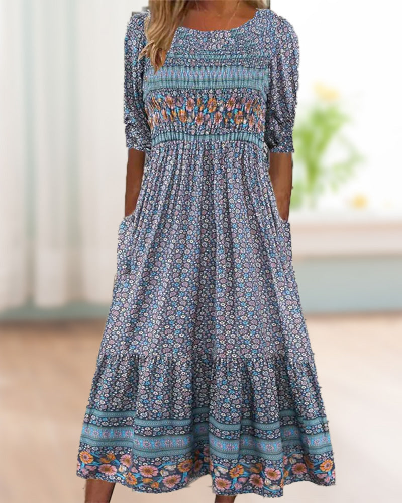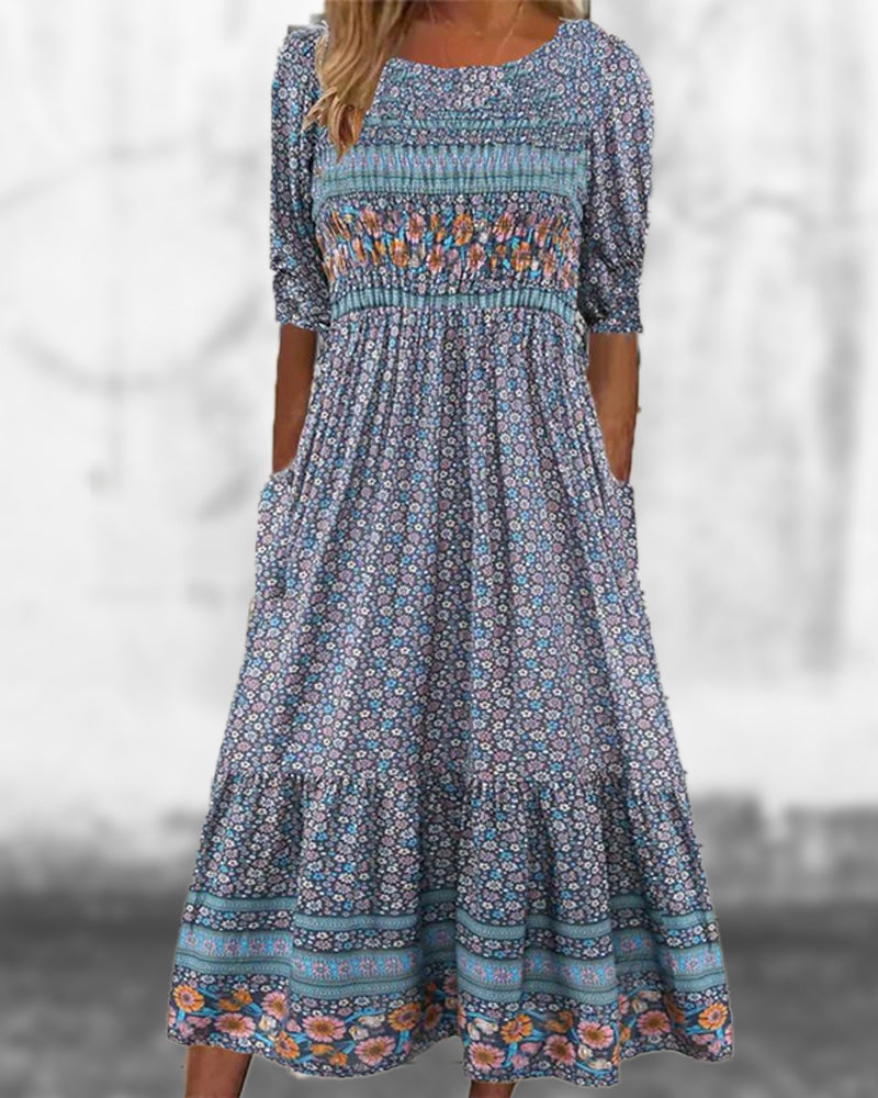ChicSelect présente cette robe maxi à imprimé floral délicat pour un look champêtre et raffiné. Son buste froncé et ses manches trois-quarts apportent une touche de confort et d’élégance tandis que sa jupe fluide danse avec le vent.