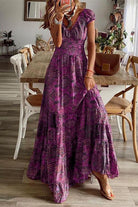 Cette robe maxi fluide dévoile un imprimé patchwork aux nuances chaudes qui capte le regard. Le corsage smocké et les manches à volants créent une silhouette flatteuse et féminine. La jupe à volants superposés offre un mouvement aérien à chaque pas.
