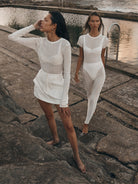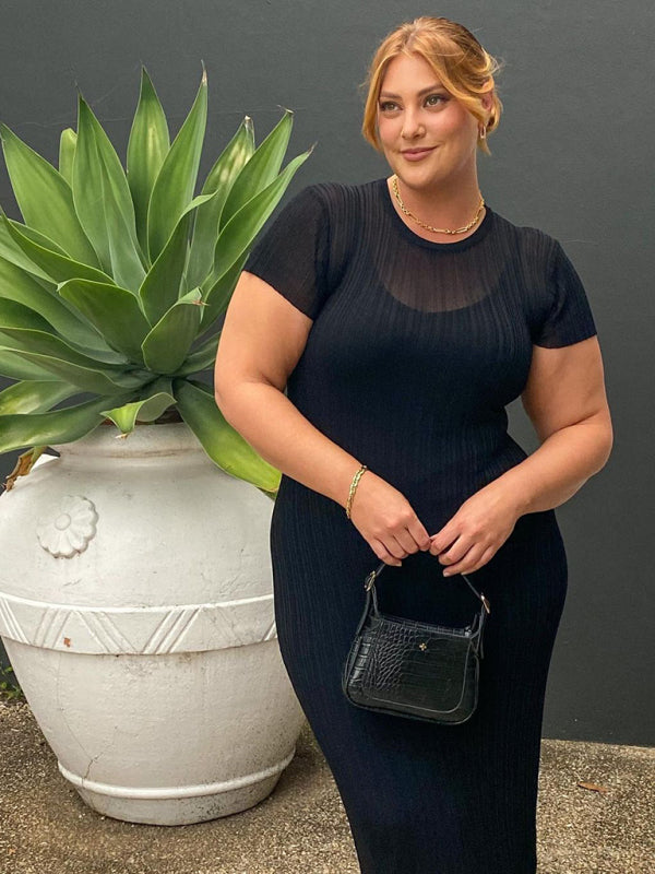 Cette robe longue en maille côtelée épouse délicatement la silhouette pour un rendu fluide et élégant. Les manches courtes bouffantes et l’encolure carrée apportent une touche contemporaine et féminine.