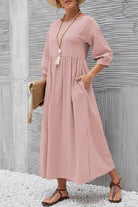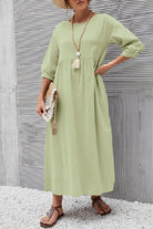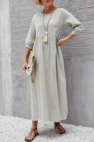 Cette robe maxi décontractée allie légèreté et élégance pour un style sans effort. Sa coupe ample et ses manches trois-quarts offrent une grande liberté de mouvement.Le tissu en coton texturé assure une sensation douce et respirante toute la journée.