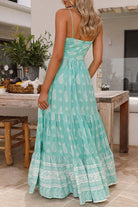 Cette robe maxi à volants successifs marie une découpe délicate sous la poitrine à un imprimé raffiné pour un style romantique. Son tissu en viscose fluide et ses fines bretelles ajustables garantissent légèreté et confort toute la journée.