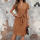 Cette robe mi-longue ceinturée offre un parfait équilibre entre confort et style avec son tissu structuré et sa coupe simple. Idéale pour le bureau, une sortie en ville ou un déjeuner entre amis, elle s’adapte à toutes vos envies.