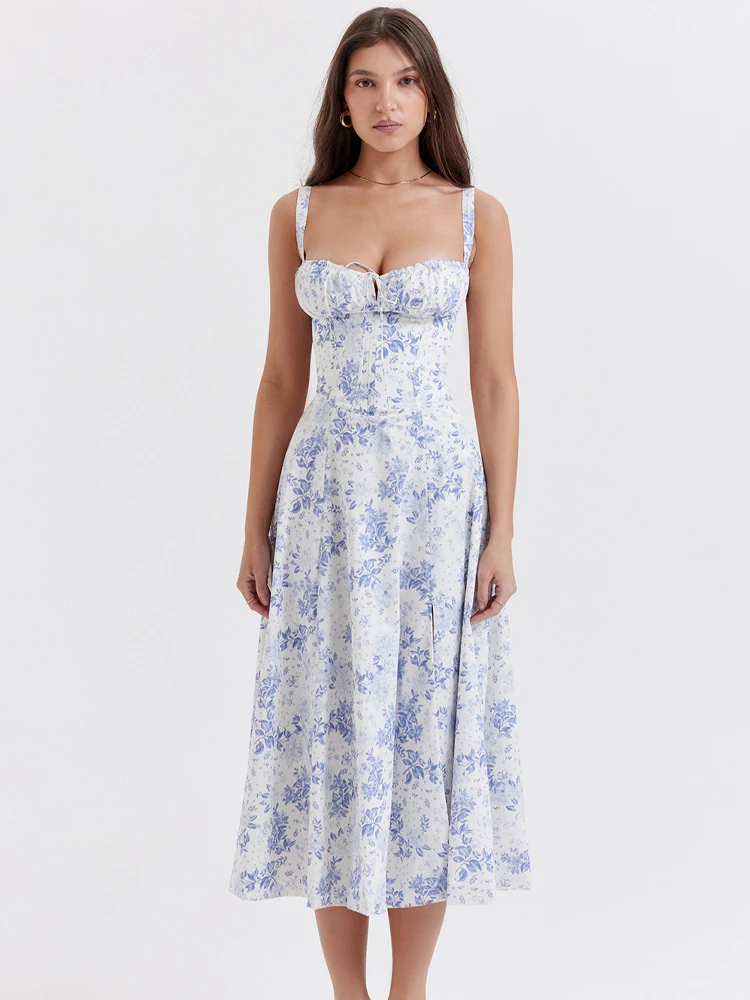 Cette robe midi à fleurs est un incontournable de la saison avec son imprimé délicat et sa coupe flatteuse. Son tissu doux et sa silhouette féminine en font une pièce idéale pour allier confort et style au quotidien.