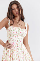 • Imprimé délicat : Motif floral rose et vert sur fond ivoire pour une touche romantique