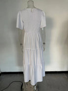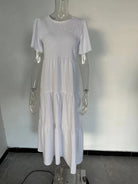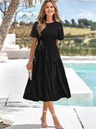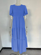 Cette robe midi arbore des volants superposés pour un mouvement aérien et une allure sophistiquée. Confectionnée dans un tissu léger, elle assure un confort optimal du matin au soir. Les manches bouffantes apportent une touche romantique et moderne.