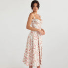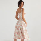 Cette robe midi met en valeur la silhouette grâce à son corsage structuré et son imprimé floral délicat. La jupe évasée assure un mouvement gracieux à chaque pas, tandis que les bretelles fines ajustables offrent un maintien sur-mesure.