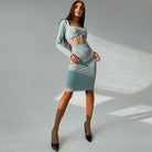 Cette robe ajustée met en lumière la taille grâce à ses découpes ingénieuses et son corsage structuré. Le tissu côtelé légèrement extensible épouse les courbes tout en assurant un confort optimal. Les manches longues et l’encolure carrée contrastent avec les découpes latérales pour un effet graphique saisissant.