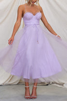 Cette robe midi en tulle joue la transparence et la délicatesse tout en offrant une silhouette raffinée. Son bustier structuré et sa jupe fluide en font une pièce à la fois féminine et sophistiquée.