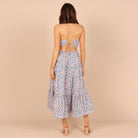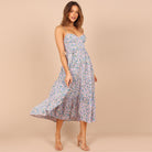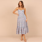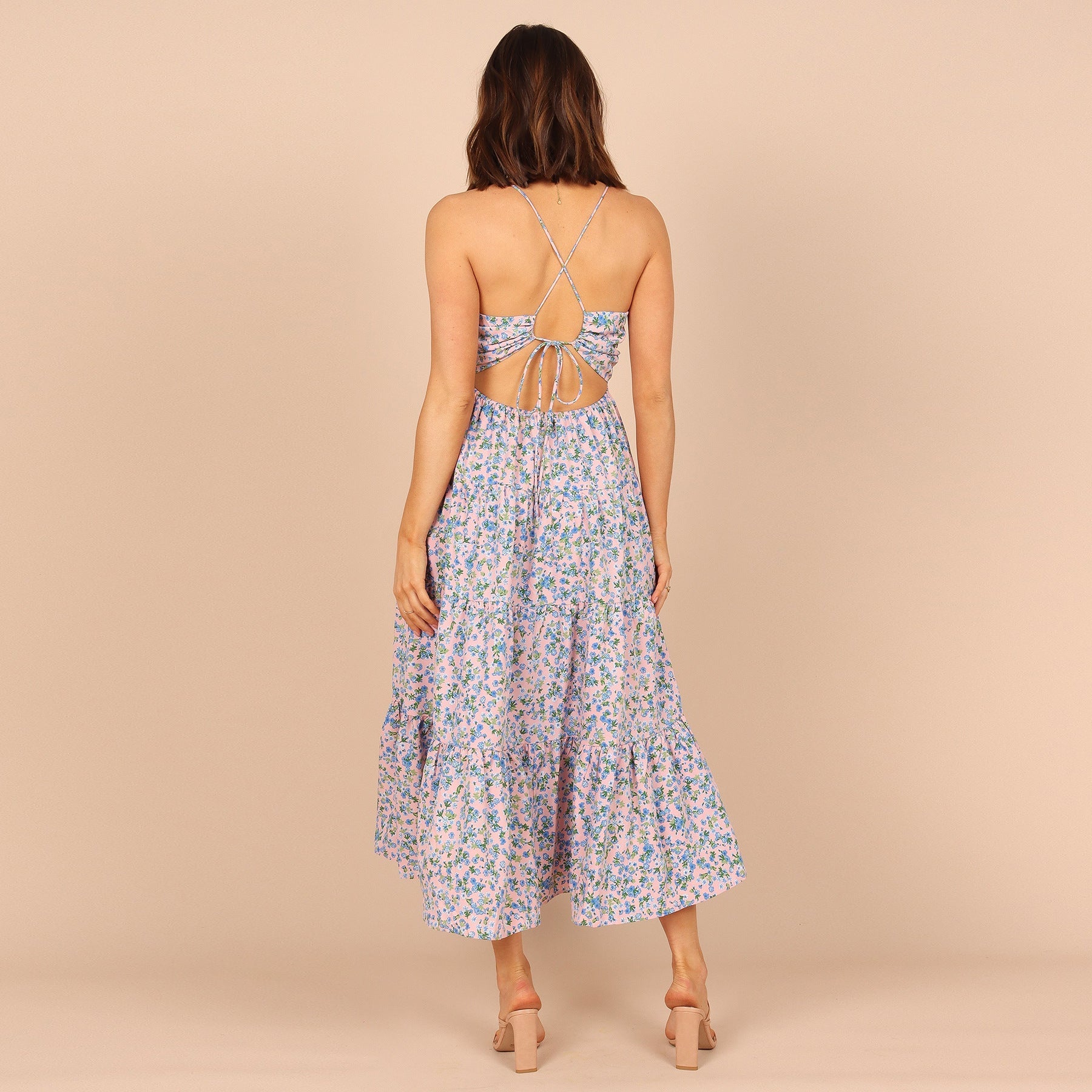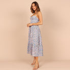Cette robe midi à bretelles fines et bustier froncé offre une allure fraîche et romantique avec son imprimé fleuri délicat. Sa jupe à volants apporte fluidité et légèreté, idéale pour bouger librement tout en restant élégante.
