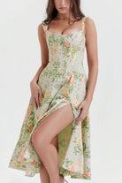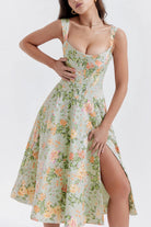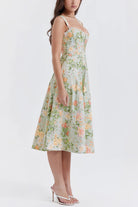 Cette robe midi à fleurs incarne la fraîcheur et la féminité avec son imprimé floral délicat et son encolure flatteuse. Sa coupe évasée et ses bretelles larges assurent confort et élégance tout au long de la journée.