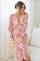 Cette robe midi fleurie séduit par sa coupe ajustée, son tissu délicat et ses manches longues transparentes. Elle offre un équilibre parfait entre féminité, douceur et élégance naturelle.