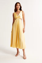 Cette robe midi fluide en satin se distingue par sa coupe moderne avec détail noué à l’avant et son tissu doux au tombé impeccable. Son éclat subtil et sa légèreté en font un choix parfait pour célébrer les beaux jours.