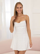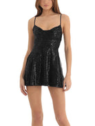 Cette mini-robe se pare de sequins délicats pour capter la lumière à chaque mouvement.