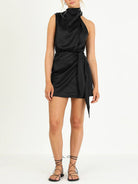 Cette robe portefeuille en satin offre une coupe ajustable et un tombé fluide qui sublime la silhouette. Grâce à sa matière satinée légère, elle garantit une sensation de confort et de légèreté à chaque mouvement. Son encolure licou drapée ajoute une touche sophistiquée à votre look.