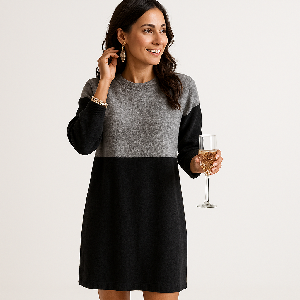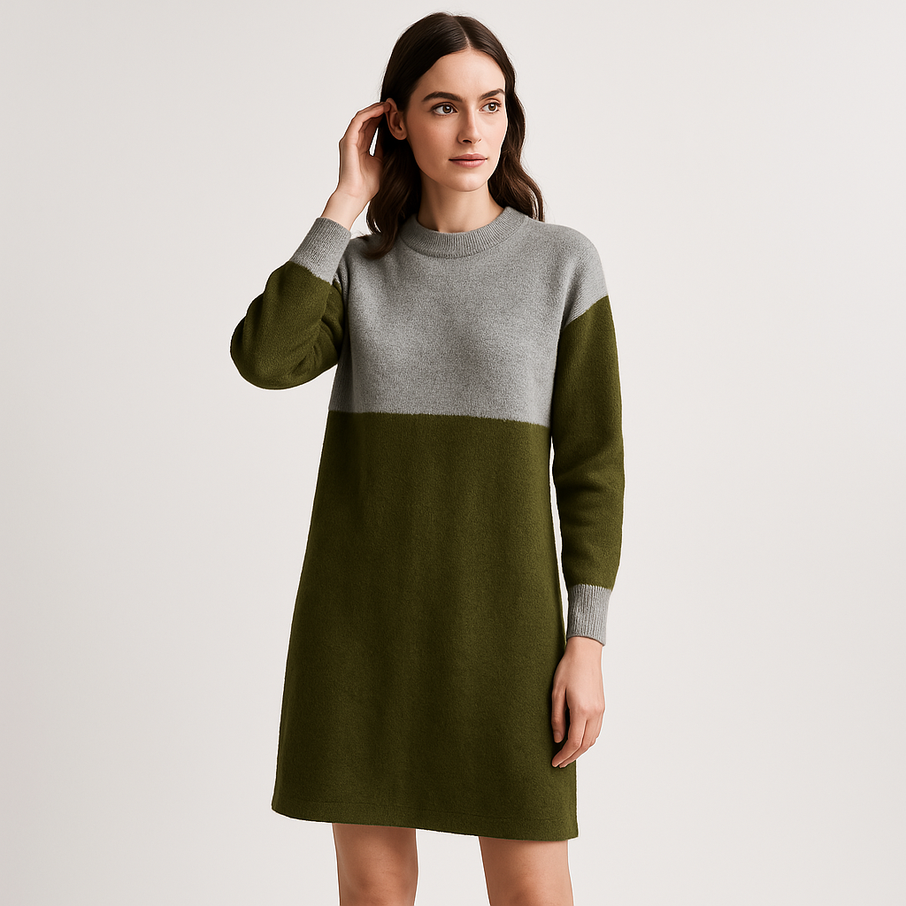 Robe Pull Élégante | Bicolore | Confort et Chaleur