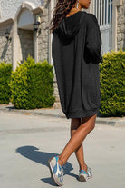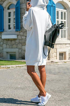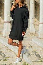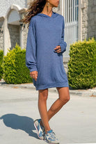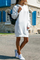 Cette robe-pull à capuche en molleton doux offre une coupe décontractée et féminine.