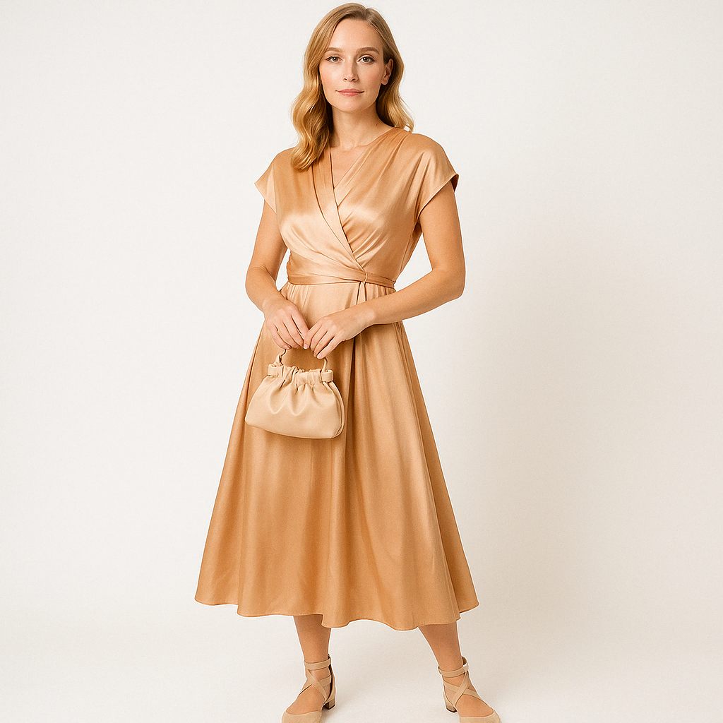 Robe Satinée Midi | Élégance Fluide | Tissu Brillant Doux