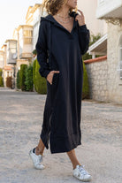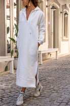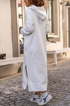 Cette robe sweat longue à capuche combine douceur et modernité dans une silhouette sportive et épurée. Avec ses fentes latérales et sa coupe ample, elle vous accompagne avec style du matin au soir.