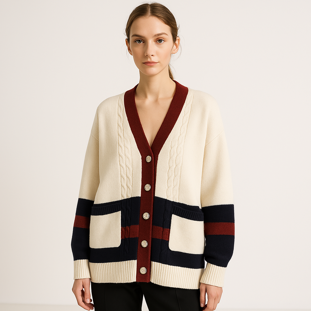 Cardigan Élégant à Bandes | Blanc | Style Preppy et Confort Décontracté