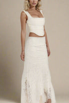 Cet ensemble deux pièces en dentelle, composé d’un top structuré et d’une jupe longue, allie confort et élégance avec une touche contemporaine. Sa matière délicate et sa coupe fluide en font un choix idéal pour les journées ensoleillées ou les soirées raffinées.