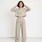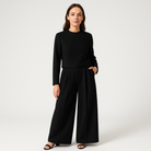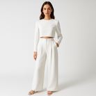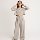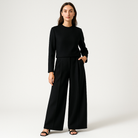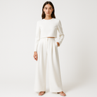 • Tenue complète : Ensemble deux pièces composé d’un haut à manches longues et d’un pantalon palazzo taille haute