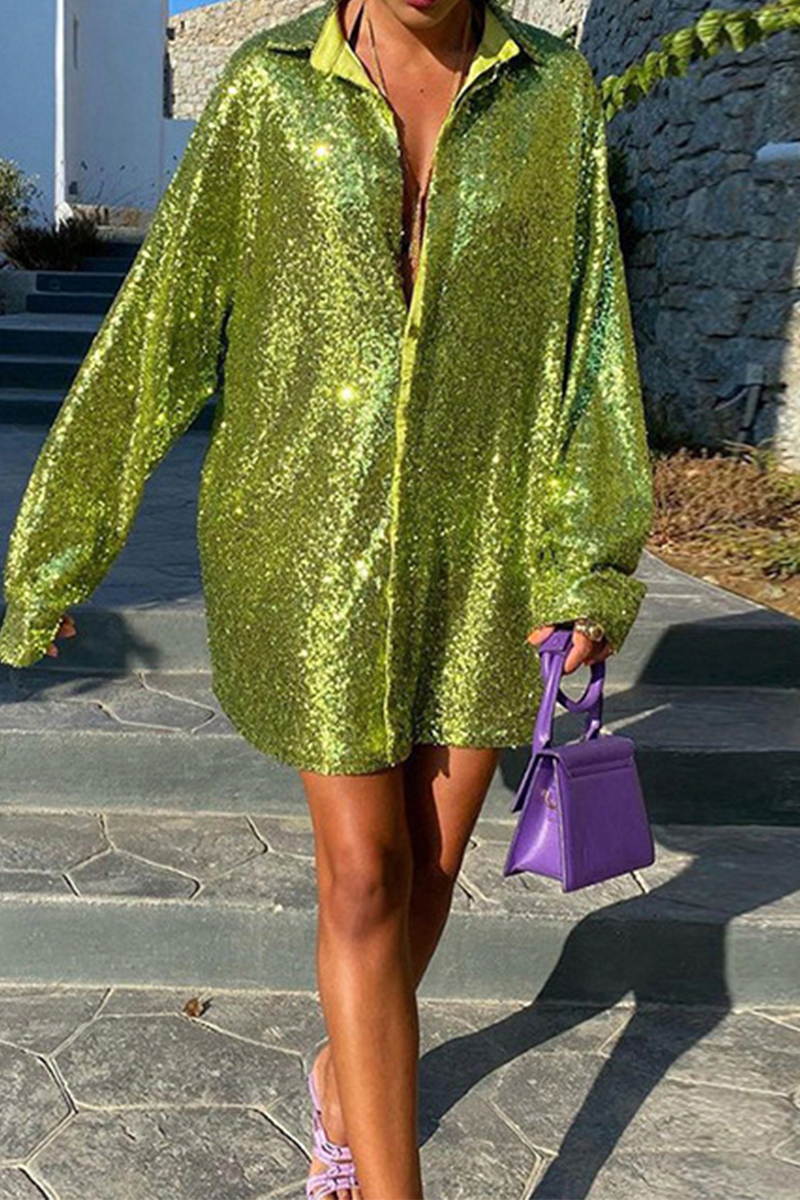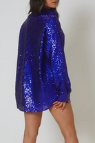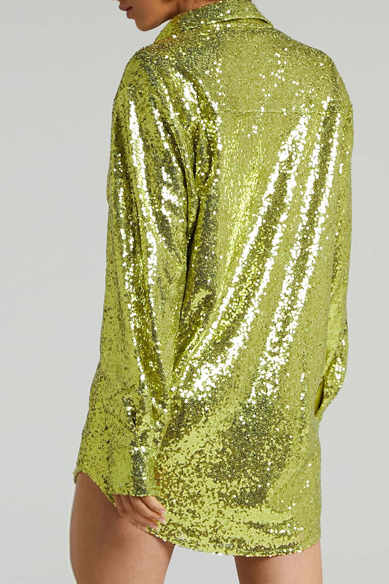 Cette robe courte à sequins allie éclat et décontraction grâce à sa coupe ample et ses manches longues. Elle offre un look à la fois moderne, confortable et résolument festif.