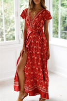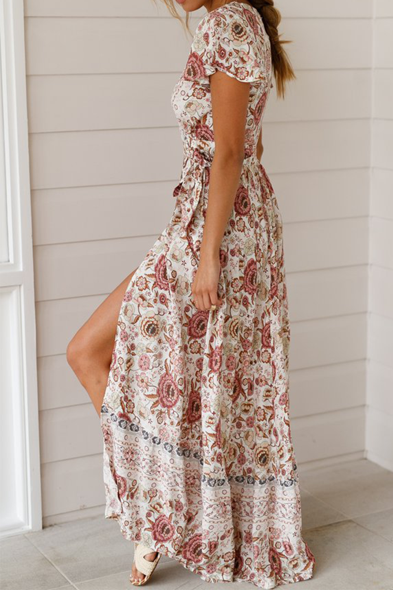 Cette robe longue portefeuille à imprimé floral offre un mélange irrésistible de fraîcheur, de féminité et de liberté. Son tissu fluide, sa coupe flatteuse et sa fente audacieuse en font une pièce indispensable pour la saison.