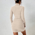 Cette robe pull courte en maille côtelée combine confort et style avec sa coupe ajustée et son col montant enveloppant. Idéale pour composer un look moderne sans compromis sur la chaleur.