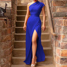 Son design moderne à une épaule et sa fente audacieuse en font une pièce phare pour vos événements les plus chics.