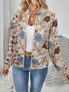 Cette veste zippée à imprimé floral est parfaite pour un look doux, féminin et décontracté.